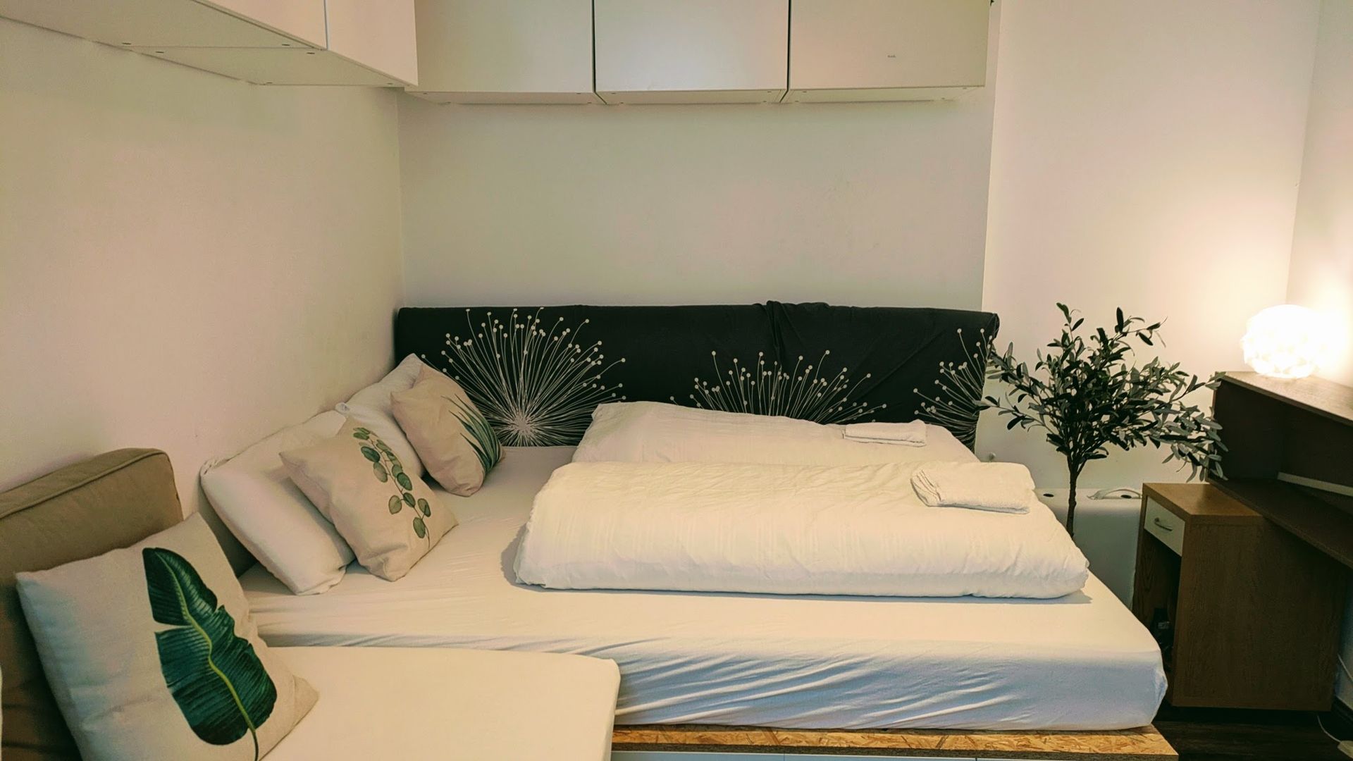 BETTWÄSCHE & BETTWÄSCHE: Alle unsere Bettdecken sind Einzelbettdecken und das Bett hat zwei Einzelmatratzen. Bettwäsche und ein großes und ein kleines Handtuch pro zahlender Person werden kostenlos zur Verfügung gestellt. Zusätzliche Handtücher oder Bettwäsche müssen im Voraus bestellt und beim Vor-Check-in nach der Buchung bezahlt werden.